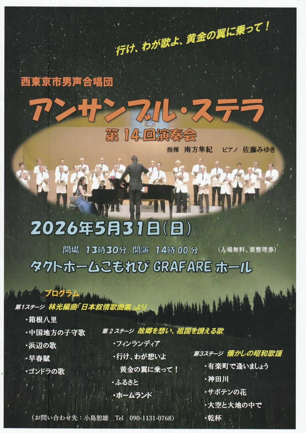- 男声合唱団アンサンブル・ステラは西東京市を拠点に活動する唯一の男声合唱団です。